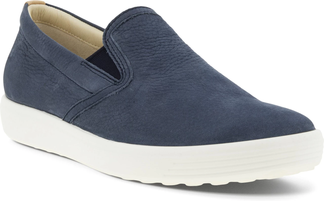 Englin’s Fine Footwear presents the women’s ‘Soft 7 Slip-On Sneaker’ from ECCO. This is the timeless ECCO SOFT 7 sneaker that you know and love made especially for a woman’s everyday needs. This is your versatile walking shoe. This women’s slip-on sneaker with a casual sporty vibe is cushioned with dependable outsole support and features a flexible footbed that provides all-day comfort. The dimpled outsoles absorb impact and distribute weight for effortless wearability. Ultra-soft leather uppers show off a bit of personality with their pebbling effect and premium detailing from the natural leather back patch. You can always depend on ECCO to provide you with long-lasting comfort, in a style that you can make all your own.