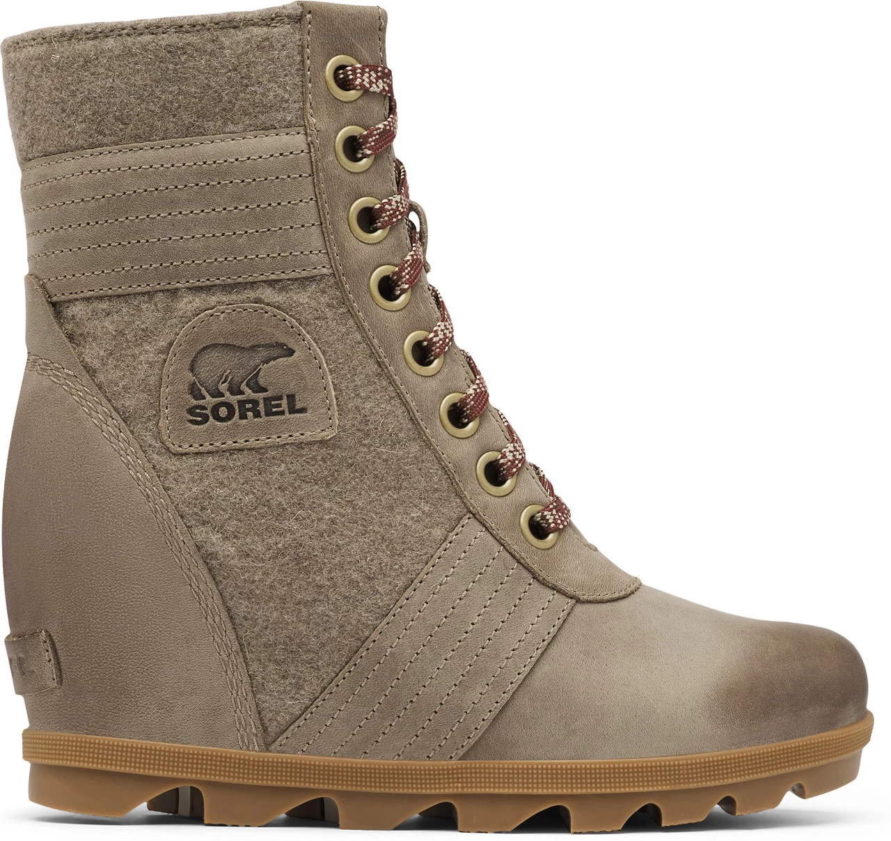 Englin’s Fine Footwear presents the women’s ‘Lexie Wedge’ from Sorel. This sleek wedge bootie feels as good as it looks, even in the harshest weather. Crafted of supple waterproof full-grain leather and rich coated canvas for a unique play on texture and color, you can pair it with anything. The boot’s supportive arch, molded EVA footbed and rubber outsole provide walk-anywhere comfort.