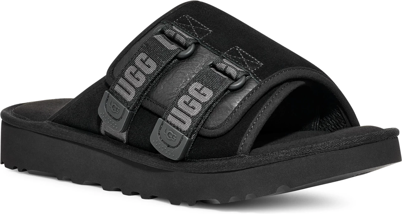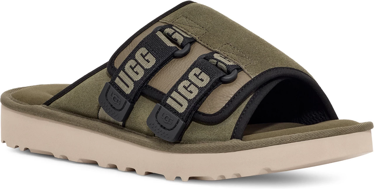 Englin’s Fine Footwear presents the men’s ‘Goldencoast Strap Slide’ from UGG. Slip-on the all-encompassing UGG® comfort of the Goldencoast Strap Slide. With a nostalgic yet enduring design, this slide wraps your feet in good feeling thanks to a suede upper, microfiber sock liner, and a foam footbed. This easy-to-wear shoe presents effortless styling for shorts and wide-leg pants on casual summer occasions. An adjustable vamp strap and hook-and-loop closure help you find a custom fit.