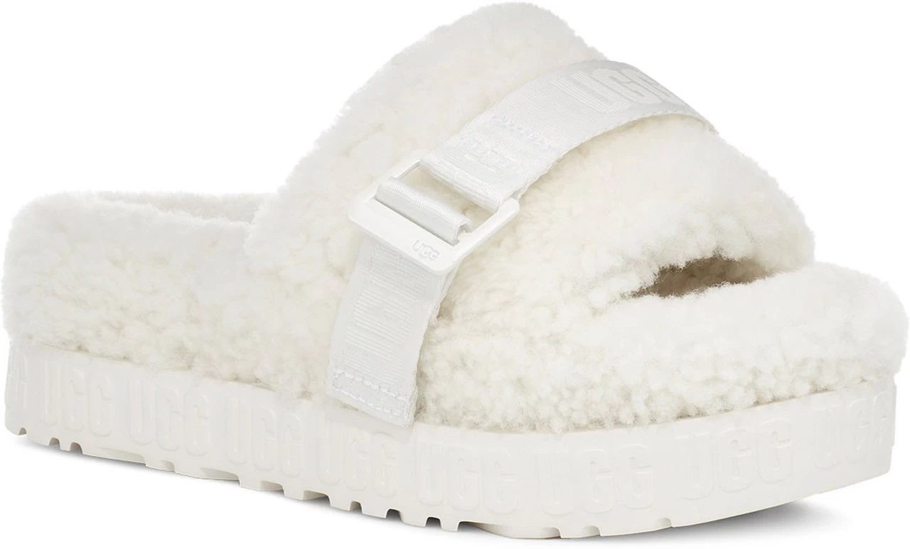 Englin’s Fine Footwear presents the women’s ‘Fluffita’ from UGG. Evolving our iconic fluff sandals, the Fluffita is a flatform with everything you love about UGG. Featuring an adjustable strap and contoured footbed for a custom feel, it’s lined with curly sheepskin and punctuated with bold graphic logo detailing. Wear it indoors or out with a colorful dress, denim, and a band tee.